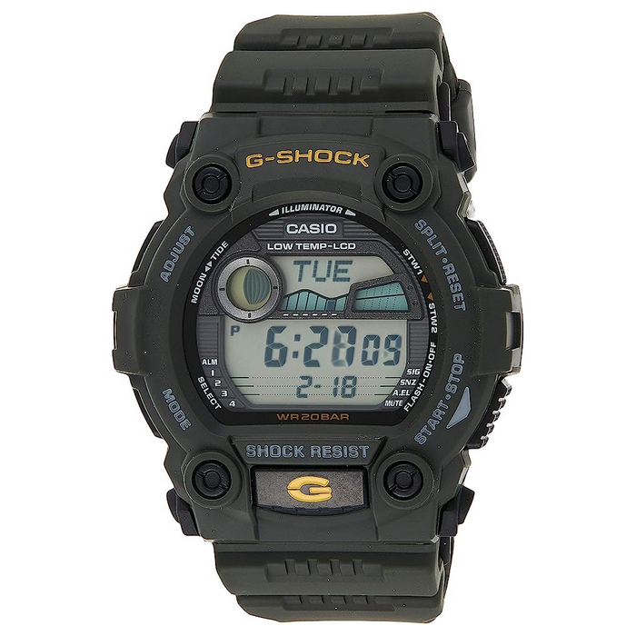 From G-SHOCK, the watch that brought unmatched toughness to personal timekeeping, comes a collection of models that deliver a level of protection. These watches are designed and engineered to become partners of people who like their activities rough and rugged. Major features include four large bezel screws and protruding surfaces that divide the form of the watch into six sections for a fashionable design. Buttons are among some of the largest available in the G-SHOCK lineup for easy operation. Low-temperature resistance allows operation even under very cold conditions, while moon and tide graphs provide essential information for marine leisure enthusiasts. A large LCD is divided into sections for that make information easy to locate and read whenever you need it.