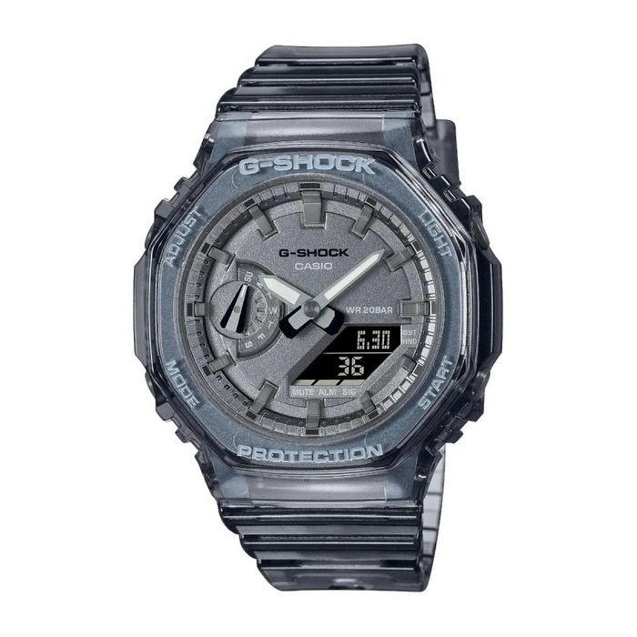Slip on a splash of clear metallic pleasure with the ever-popular analog-digital combination GA-2100 in a slimmer, more compact profile.