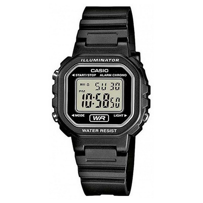 The Casio Ladies Alarm Watch - LA-20WH-1ADF is made perfect to fit a ladies wrist with it small design. The hourly time signal and a daily alarm will keep you up to date with all appointments. The watch features a 1/100-second stopwatch and is fully water resistant which makes it a great sports buddy.