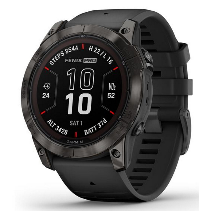 • Garmin fenix 7X Pro, Sapphire Solar Edition - Carbon Grey DLC Titanium with Black Silicone Band