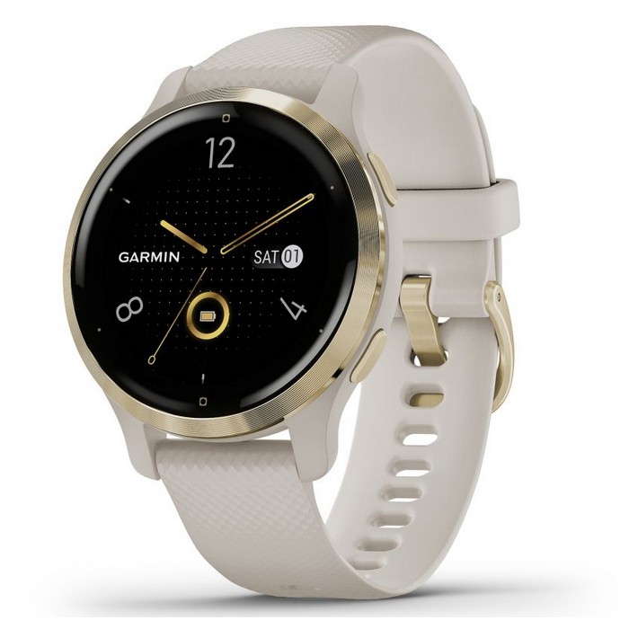 Garmin Venu 2S Light Gold Bezel with Light Sand Case and Silicone Band Watch Product Info