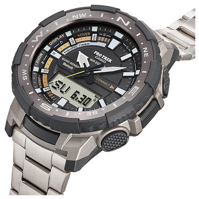 Head out onto the waters with the 200-meter water resistant PRO TREK PRT-B70 line. Strong, lightweight titanium bands take you from everyday life to the rugged outdoors.