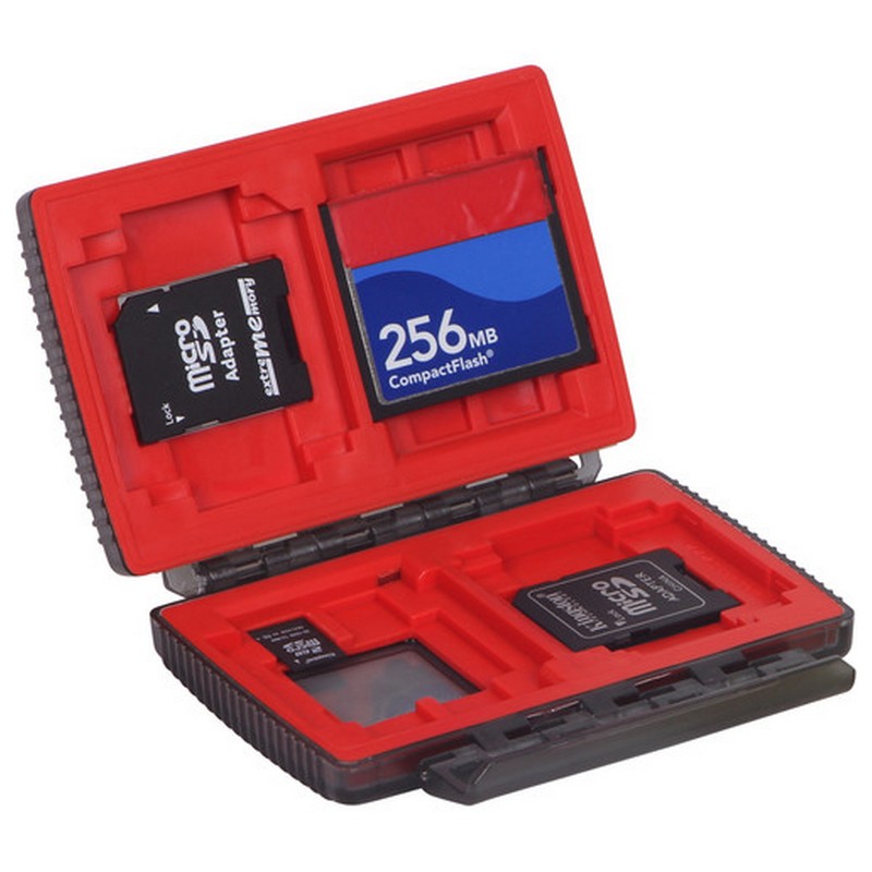 Store and protect eight micro sd cards, four sd, and four cf cards in the onyx gepe all-in-one card safe extreme from gepe. A well-designed case, it is watertight with an ipx7 rating, and floats in water for easy retrieval if dropped. In addition, the safe also provides dust, static electricity, humidity, and impact protection. The safe features clear windows for viewing contents, and a clasp closure that is easy to operate while wearing gloves. To remind them of how many empty cards are left, many photographers will store them with the label up for empty, and label down for full. Made of polycarbonate, with a reinforced hinge and stainless steel pin, this crush-proof case is strong and durable.
