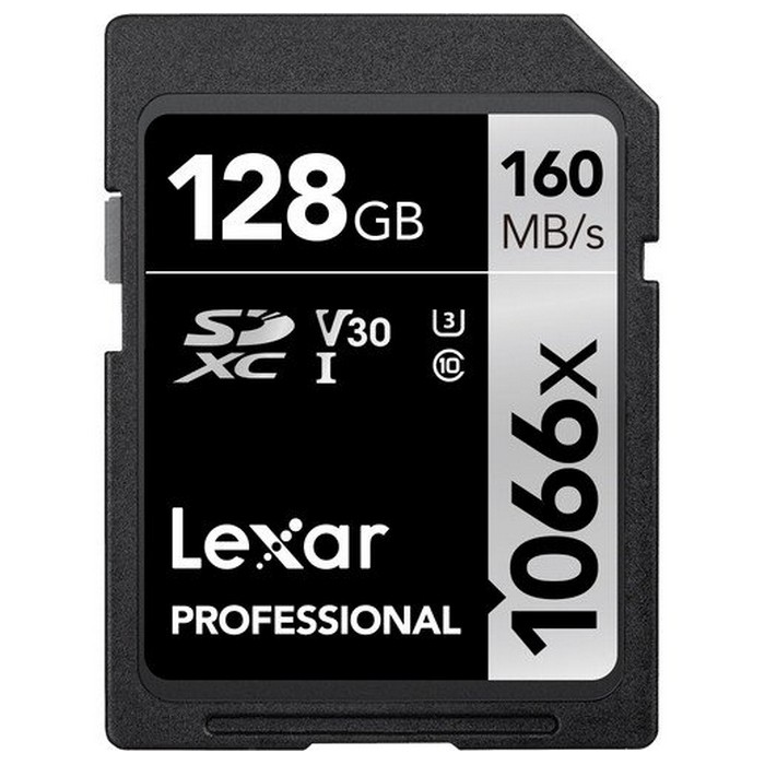 Designed for mirrorless and DSLR cameras, the 128GB Professional 1066x UHS-I SDXC Memory Card from Lexar lets you quickly capture and transfer high-quality photos, including Full HD and UHD 4K video with read speeds of up to 160 MB/s and write speeds of up to 120 MB/s. Accelerated workflow and faster results.