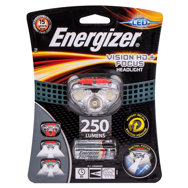 Energizer Vision HD Plus Focus headlight Grey (HDD32) 250 Lumen Product Info