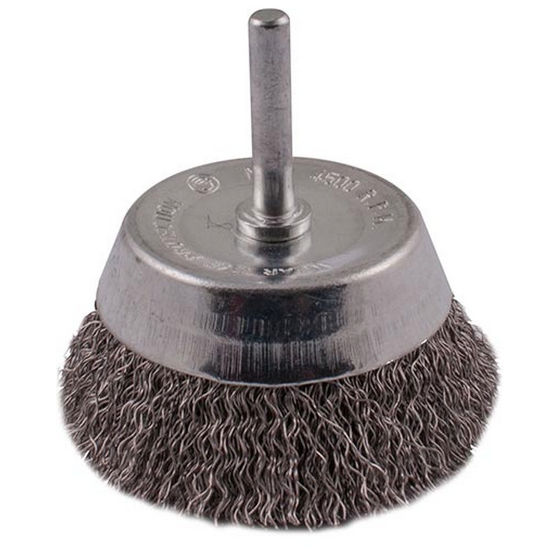 WIRE CUP BRUSH 63MM 6MM SHAFT STAINLESS STEEL