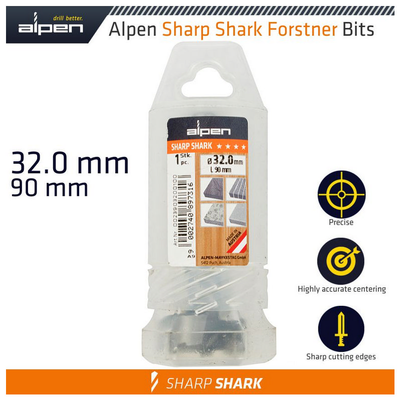 Alpen Forstner Drill Bit Sharp Shark 32Mm