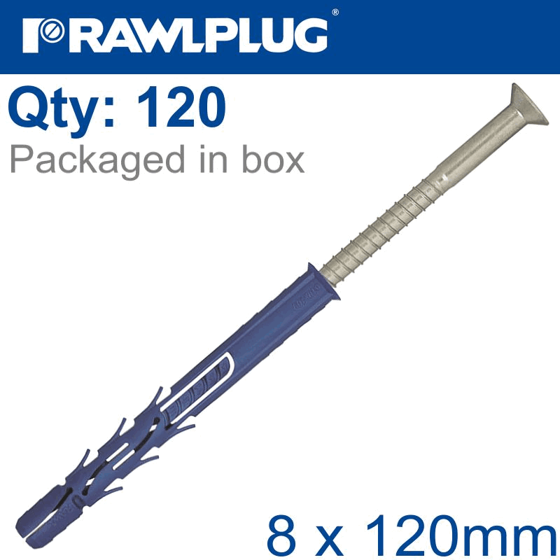 RAWLPLUG Nyl Frame Fixing Zf + Csk Screw 8.0Mmx120Mm X100 -Box