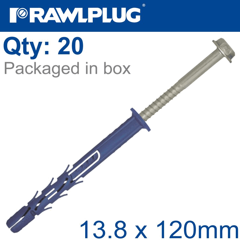 RAWLPLUG Nyl Frame Fixing Zp + Collar Hex Screw 13.8Mmx120Mm X20 -Box
