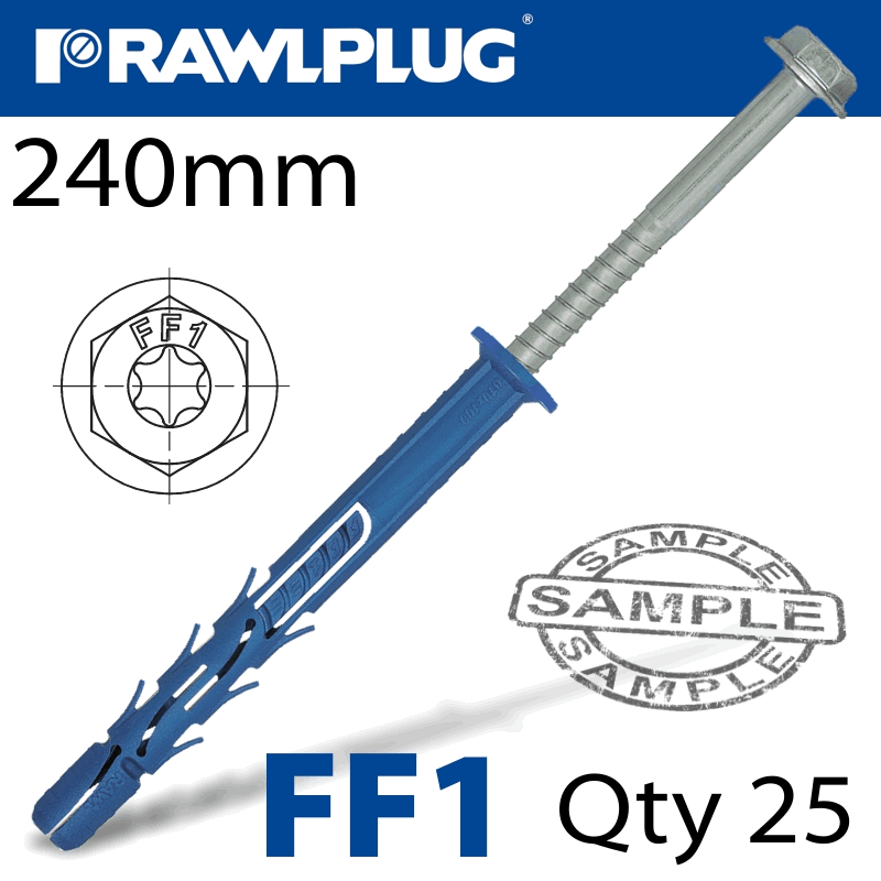 RAWLPLUG Nyl Frame Fixing Zp + Collar Hex Screw 9.8Mmx240Mm X25 -Box