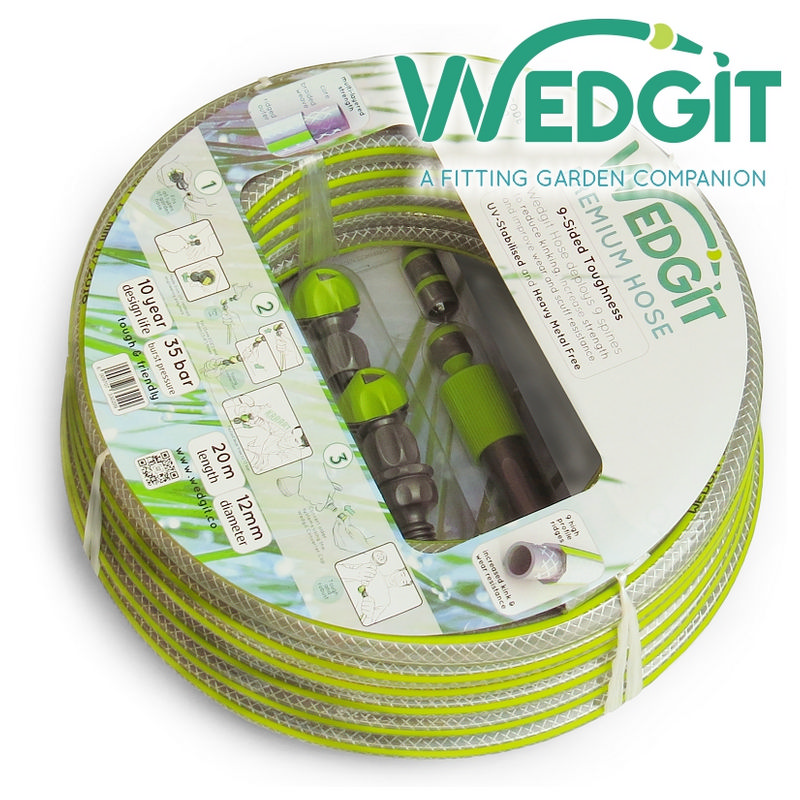 The Wedgit Premium Garden Hose is a tough and unique 9-sided garden hose with 35 bar burst pressure and a design life of 10 years.