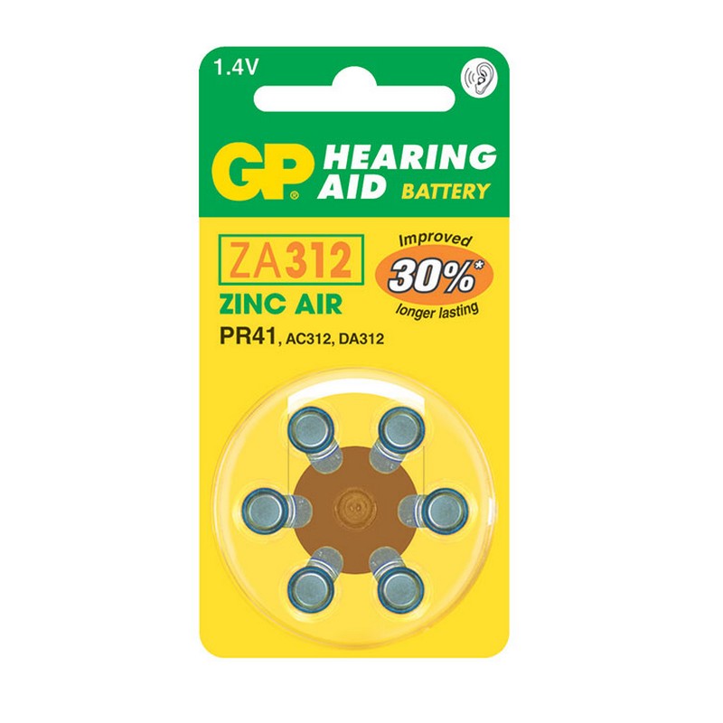 • GP ZA312 Zinc Air Hearing Aid Battery 6 Pack