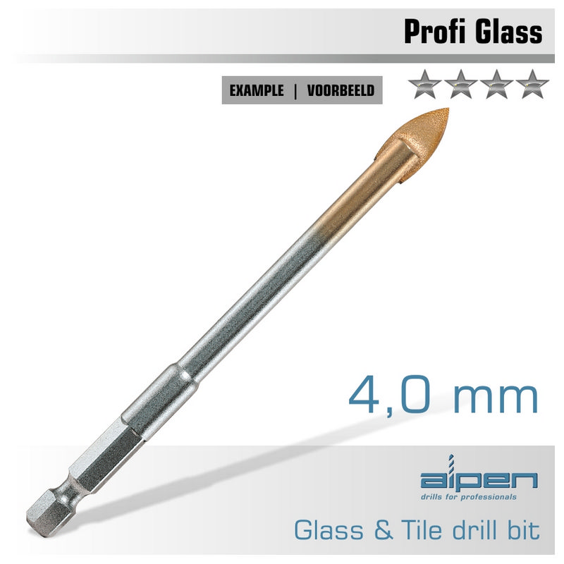 4 mm Glass & Tile drill bit with ¼" hexagonal shank