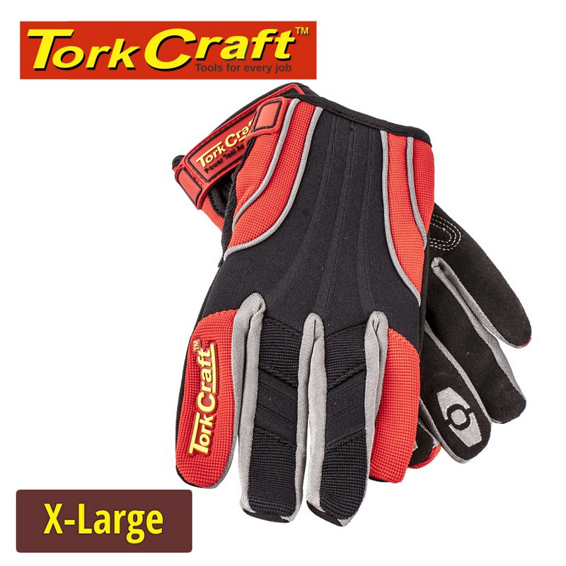 Tork Craft Mechanics Glove X Large Synthetic Leather Reinforced Palm Spandex Red