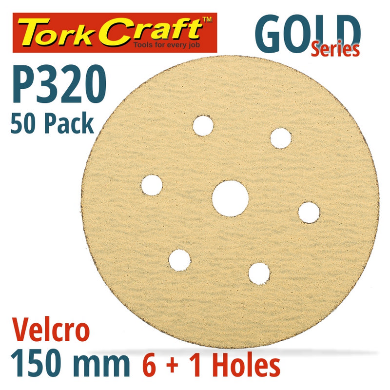 Tork Craft Gold Velcro Disc (50 Pieces) 320 Grit 150mm X 6+1 Holes