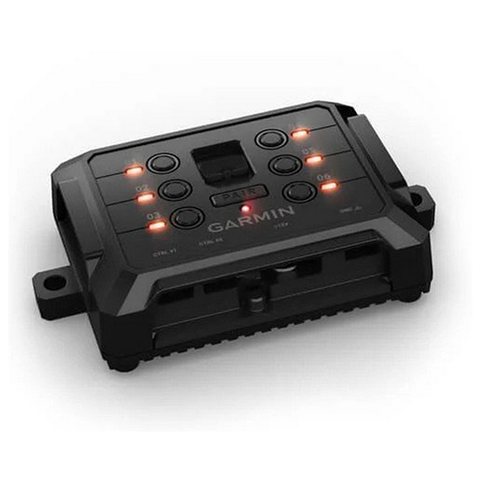 Garmin PowerSwitch is the compact digital switch box that offers convenient centralised control of your vehicle’s 12-volt accessories from a compatible1 Garmin navigator or smartphone2.