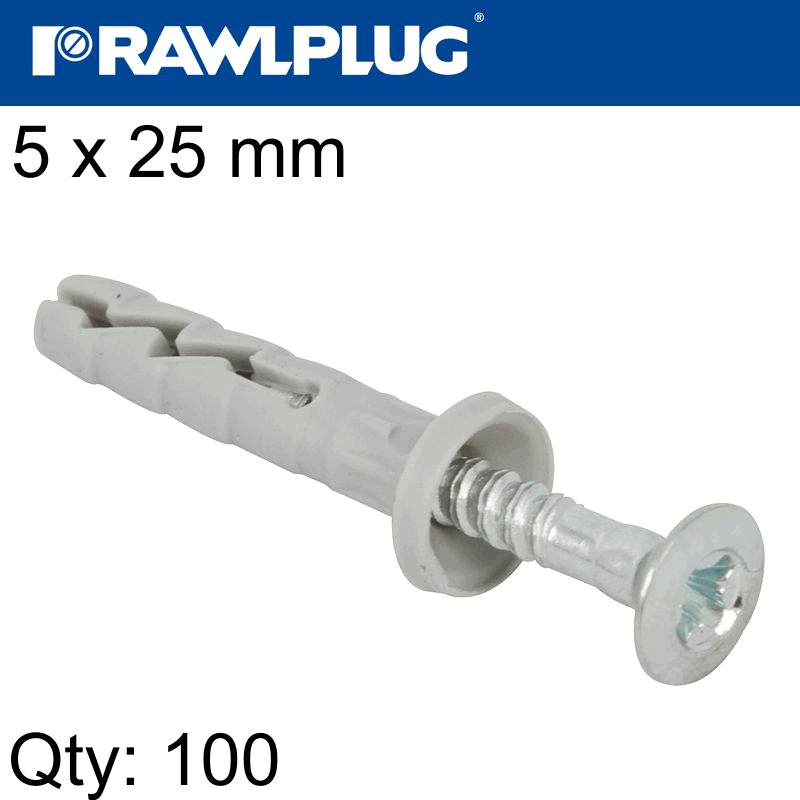 RAWLPLUG Hammer In Fixing 5 X 25Mm Cylindric 100 Psc Per Tub