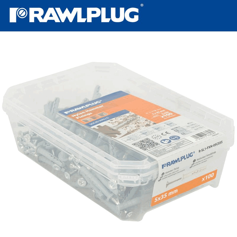 RAWLPLUG Hammer In Fixing 5 X 35Mm Cylindric 100 Psc Per Tub