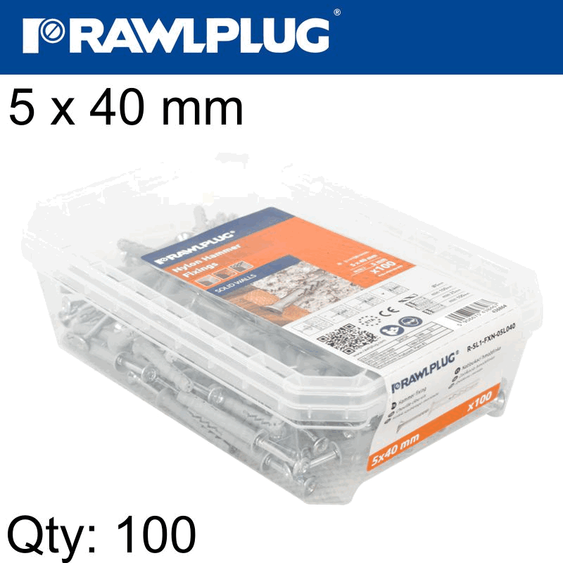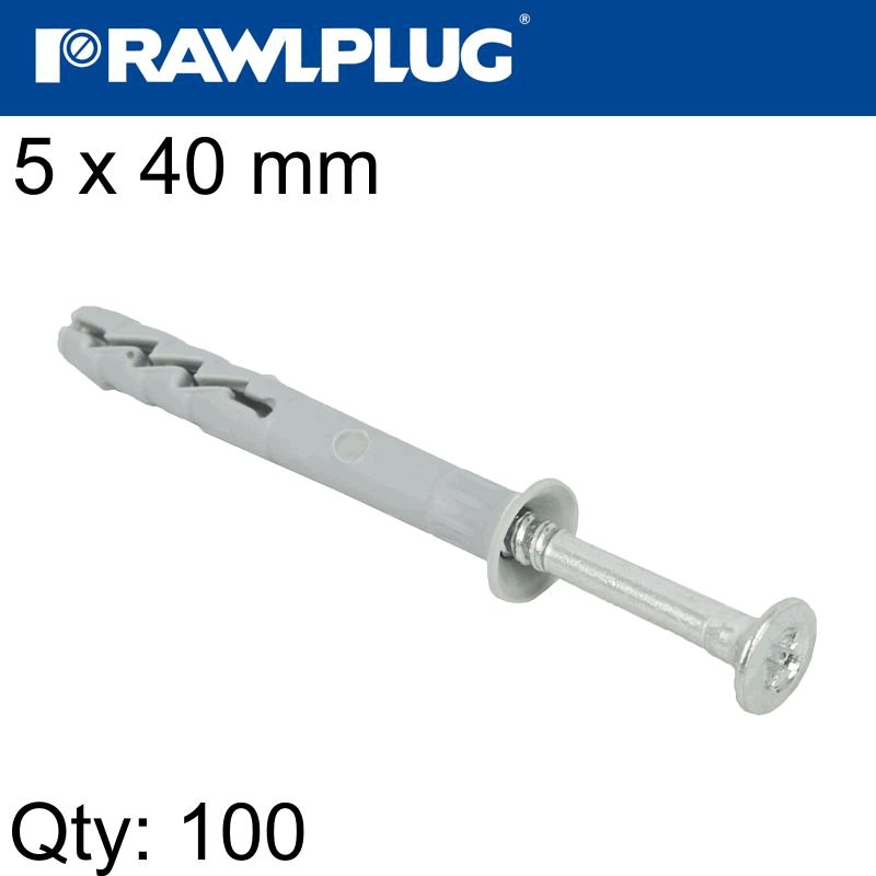 RAWLPLUG Hammer In Fixing 5 X 40Mm Csk 100 Psc Per Tub
