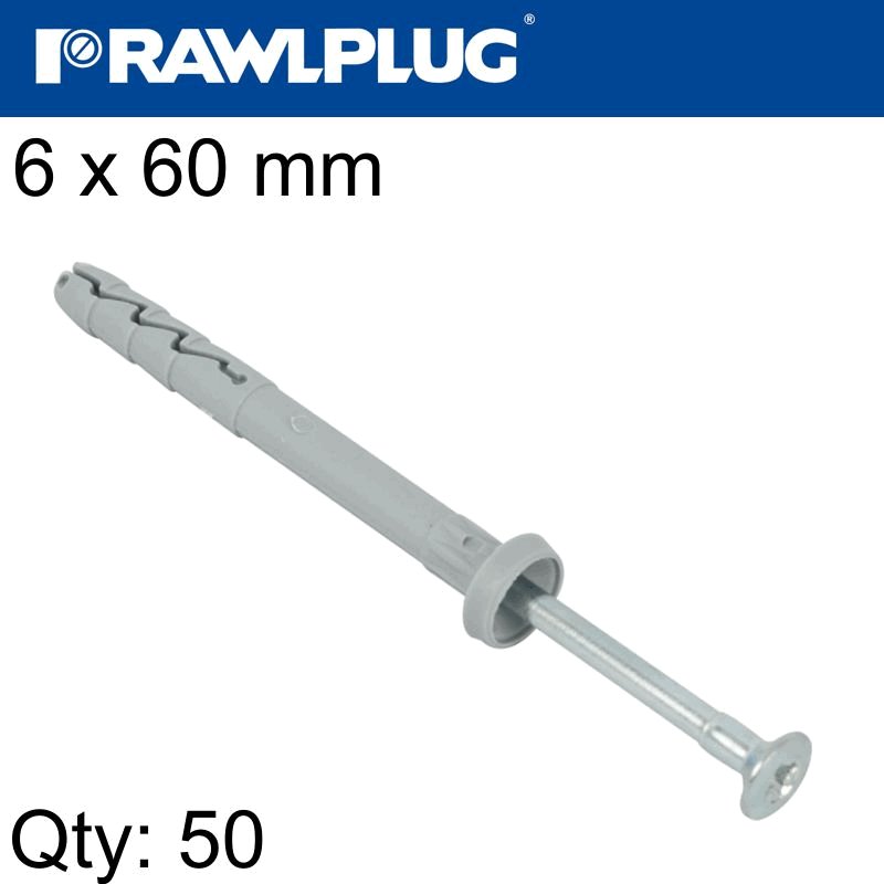 RAWLPLUG Hammer In Fixing 6 X 60Mm Cylindric 50 Psc Per Tub
