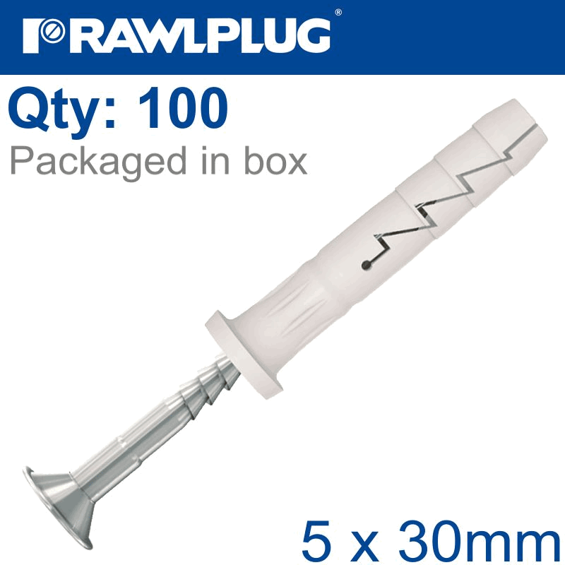 RAWLPLUG Nyl Hammer-In Fixing 5X30Mm Cyl Head X100-Box
