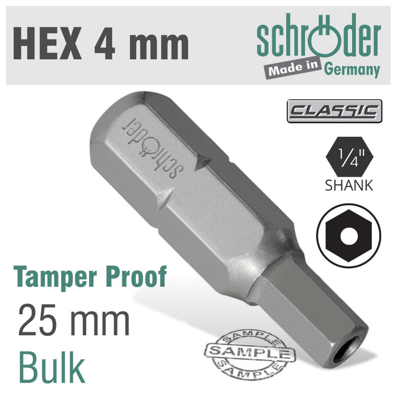 Schroder Allen Hex 4mm Security Insert Bit 25mm Bulk
