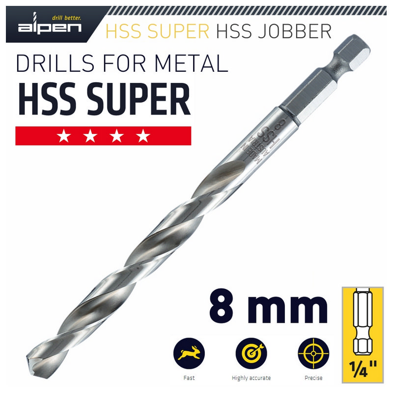 Alpen HSS Super Drill Bit Hex Shank 8mm
