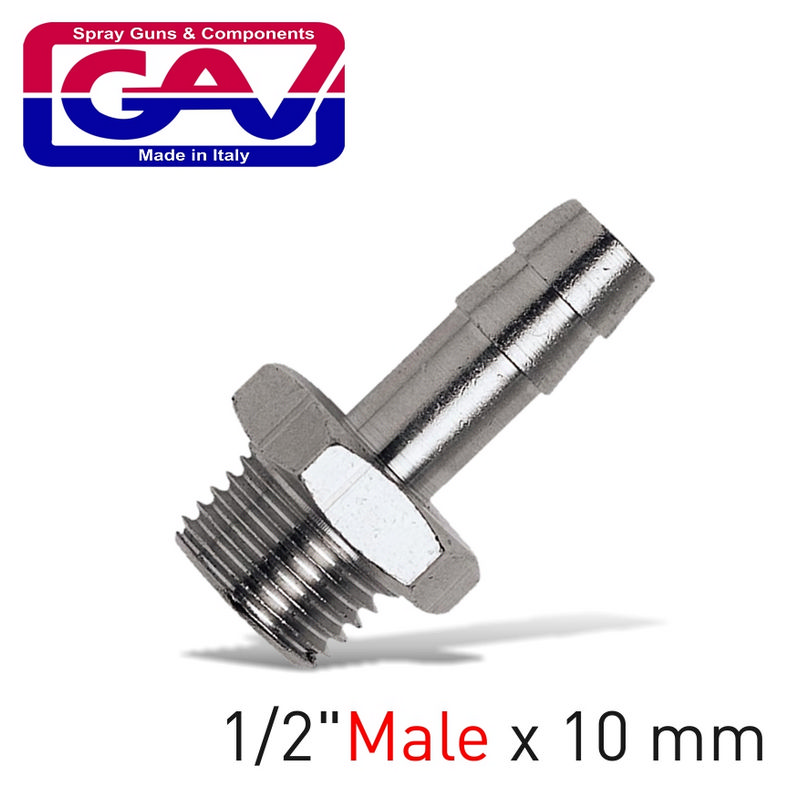 GAV pneumatic fittings from Italy Machined Fitting - Hose Adaptor 1/2' M x 10 mm