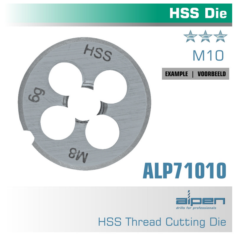 Alpen Die 10mm Round 25x9mm In Pouch HSS 1.5mm Pitch