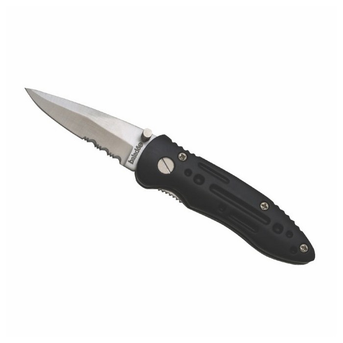 A compact, very light pocket knife with half-serrated blade. Small in size, big in use.