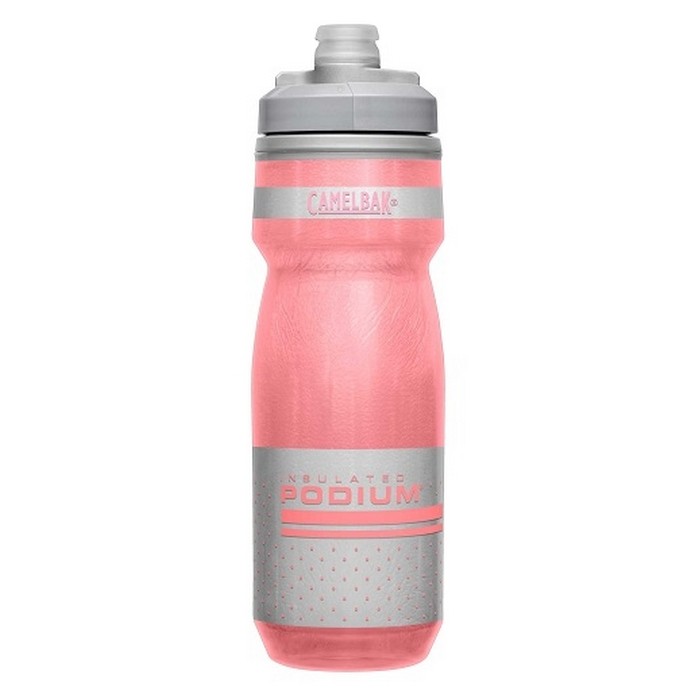 The Camelbak 2019 Podium Chill Bottle - 620ml, Reflective Pink is a new reusable design with improvements for your on-road performance. It is engineered with a high flow, self-sealing cap, which maximizes the flow rate while reducing spills and splashes. The on/off valve provides a positive lockout for leak-proof transport and all parts are 100% free of BPA, BPS and BPF. The Podium offers the best-in-class hydration, so you can stay focused on the ride.