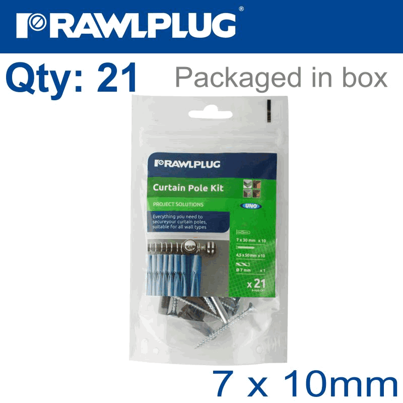 RAWLPLUG Curtain Pole Kit Uno07X10 With Screws And 7Mm Drill Bit