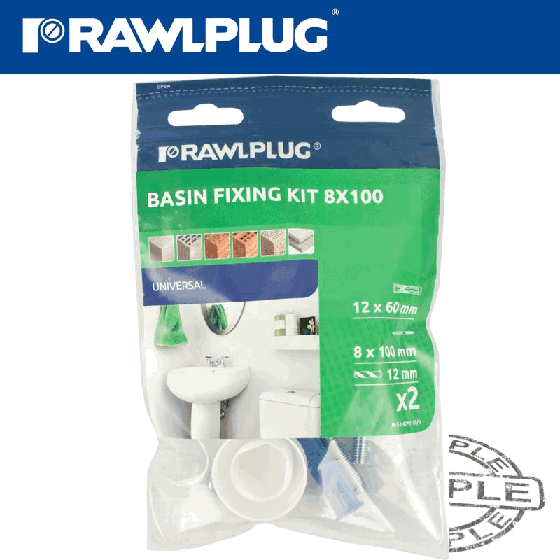 RAWLPLUG Washbasin Mounting Kit With 12Mm 4All Plugs And Screws