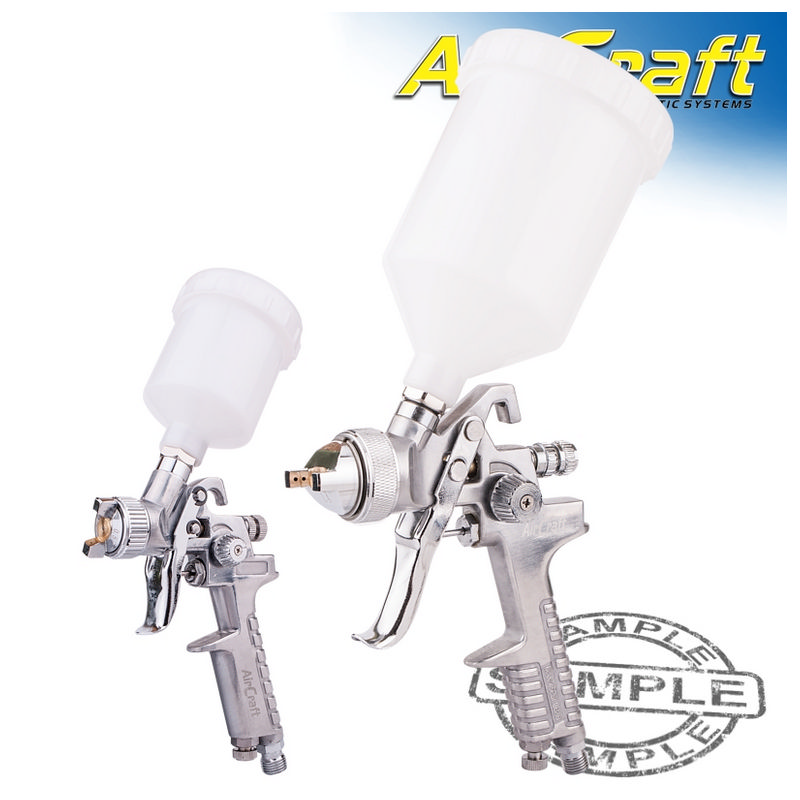 A convenient industrial quality gravity feed spray gun kit that includes a touch-up spray gun as well as a fill size HVLP spray gun. Great for home workshop and professionals alike. Polished aluminium body with gravity feed plastic cup.