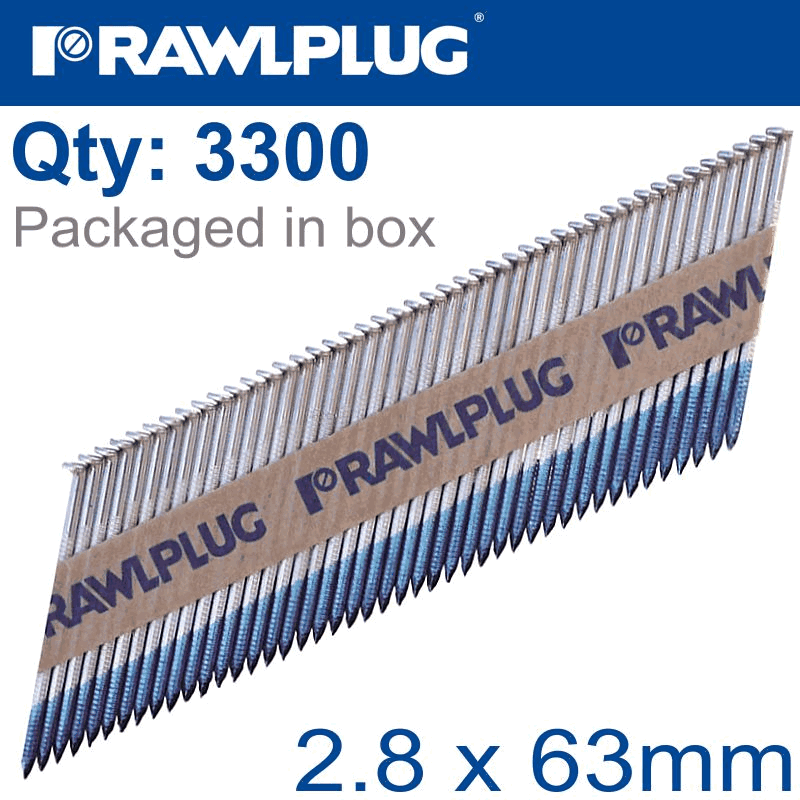 RAWLPLUG Nail Bright Clipped 2.8Mmx63Mm X3300-Box Paper Collated 0 Mic