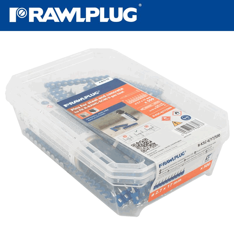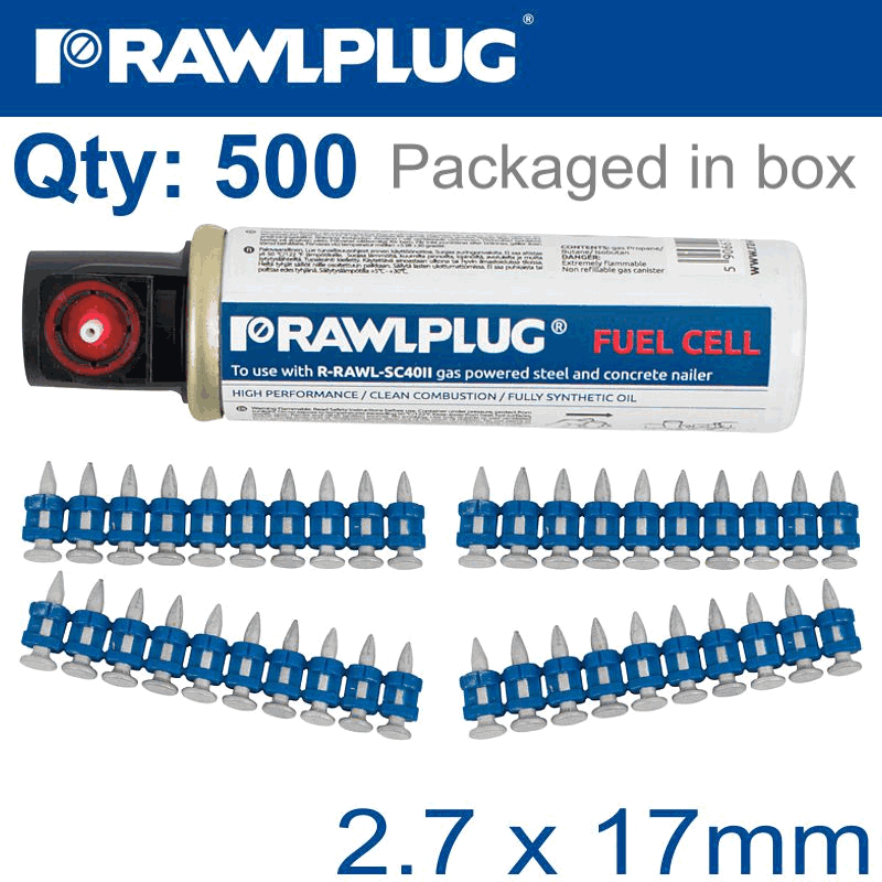 RAWLPLUG Pins For Concrete 2.7Mmx17Mm X500 Per Box + 1 Fuel Cell