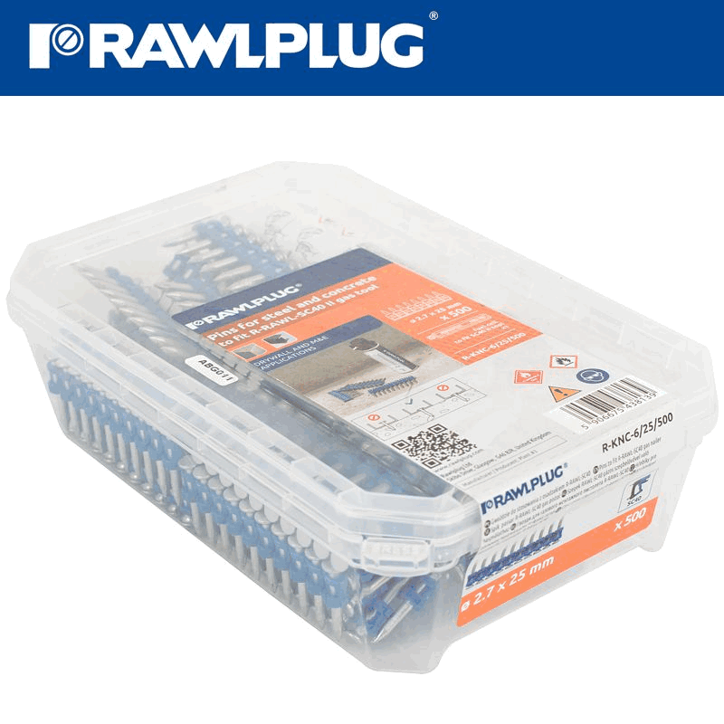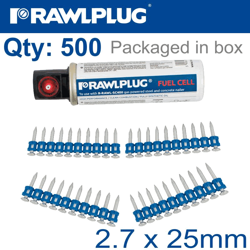 RAWLPLUG Pins For Concrete 2.7Mmx25Mm X500 Per Box + 1 Fuel Cell