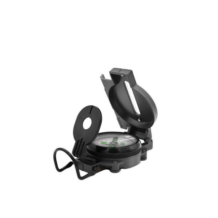Classic military-style sighting compass (also known as a lensatic).