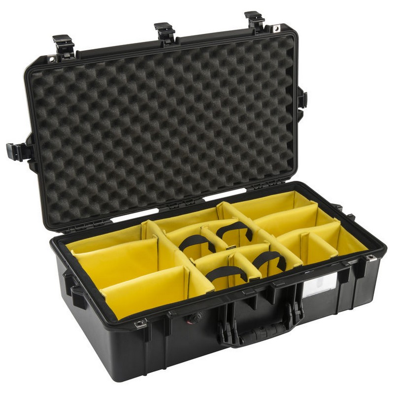 ombining strength and lightness, the black Pelican 1605 Protector Air Case with Dividers is watertight, crushproof, dustproof, and optimized for travel. For travel by air, Pelican has aggregated available airline rules for maximum overhead and check-in dimensions with the goal of creating a case that conforms to their requirements. Of course, it is always recommended to contact your carrier before departing.