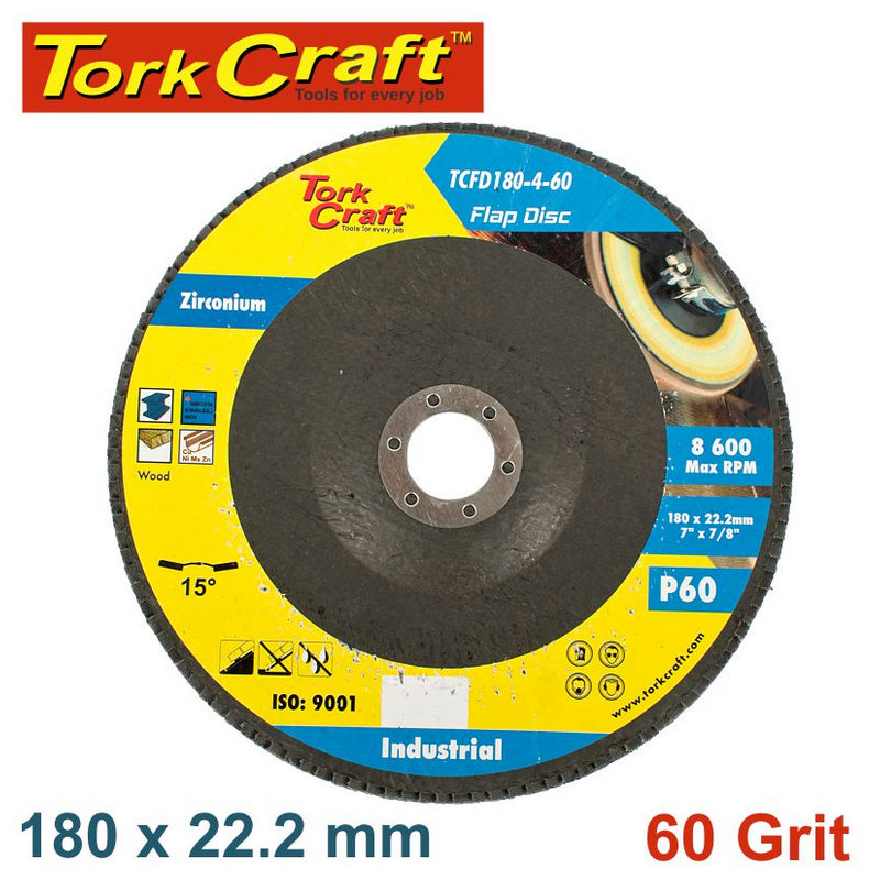 Tork Craft Flap Disc Zirconium 180mm 60grit Angled