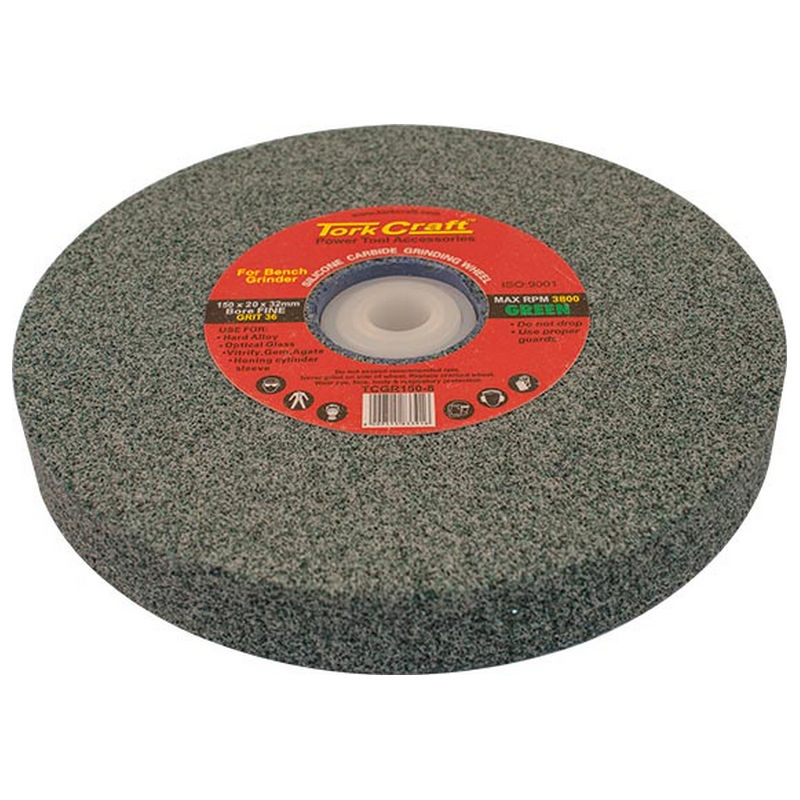 Tork Craft Grinding Wheel 150x20x32mm Green Coarse 36gr W/Bushes For Bench Grin