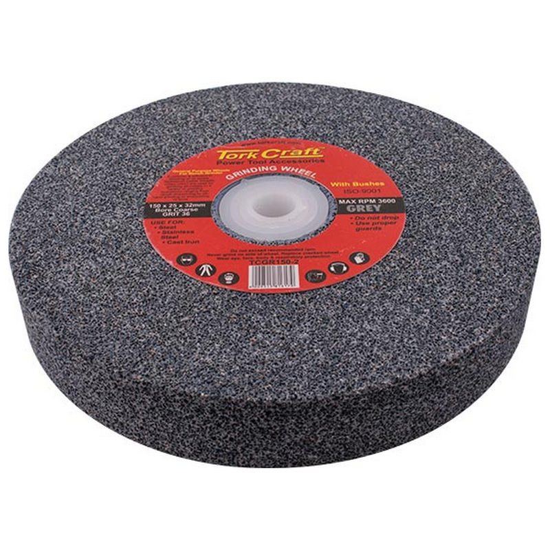 Tork Craft Grinding Wheel 150x25x32mm Bore Coarse 36gr W/Bushes For Bench Grinder