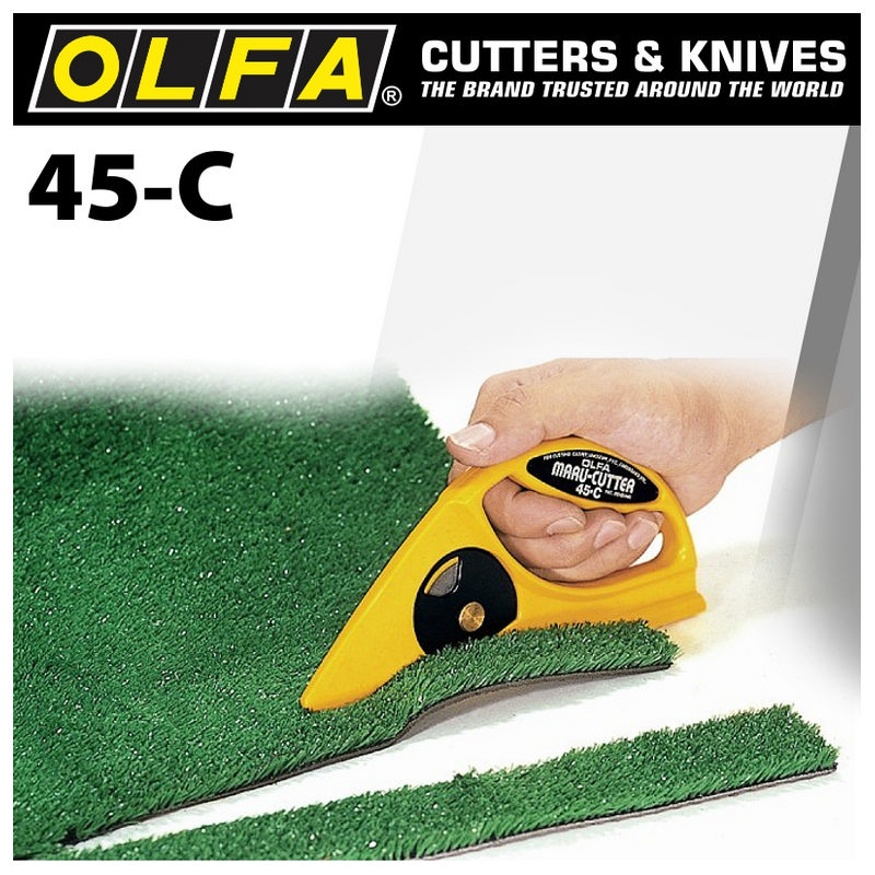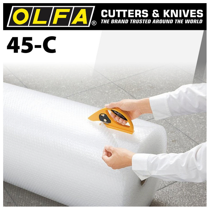 Good For:  The unique design makes the 45-C ideal for cutting things like poly resin sheets, roofing felt, foundation membranes, landscaping mesh, vinyl, carpet and linoleum. Applications where someone needs to protect the product or materials underneath, this cutter is designed so that the blade doesn't come in contact with product/materials therefore preventing damage. Furniture manufacturers and electronics manufacturers like this product as when cutting shrink-wrap off pallets, their products don't get damaged.