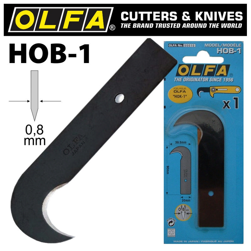 Olfa HOB-1 (20mm) Blade - Hook Format. The superior quality of the OLFA blade is the result of a step-by-step production process. Only the finest quality steel is selected for use.