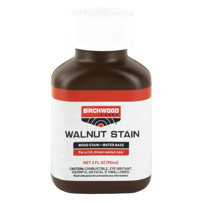 Birchwood Casey Walnut Wood Stain is een wateroplosbare, kleurvaste, lichtvaste niet uitlopende of vlekkende kleurstof voor uw houten kolf. Geeft een rijke kleur zonder korreltjes en dofheid. Walnut-Stain is een echte walnoot bruine kleur voor de traditionele look. De kleur is gemakkelijk lichter te maken door het aanmengen van de vloeistof met water. Deze kleur vloeistof wordt gelverd in een gemakkelijk af te sluiten en op te bergen flacon met een inhoud van ongeveer 90ml.