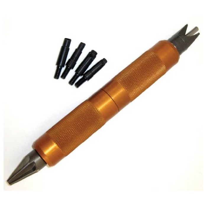 Lyman’s Case Prep Multi-Tool provides the reloader with all the essential case prep accessories in one compact, double-ended tool. Made with convenience in mind, this case prep tool is able to perform four necessary case prep tasks on rifle and pistol brass from .17-.45 caliber. The unique handle unthreads in the middle to store all parts. Both ends of the handle are threaded to allow two tool heads to be mounted simultaneously. In addition, the Case Prep multi-tool can be used with any other standard case prep tools and brushes.