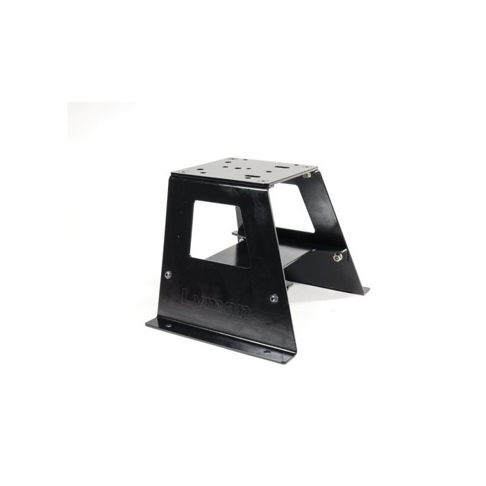The Lyman Universal Press Stand is the only press stand on the market that will accept most current single station, turret, and progressive presses of all brands. This heavy duty steel stand comes with two mounting plates pre-drilled for your favorite single station, turret, or progressive press. If by chance you have a press that does not match up with any of the numerous patterns, there is also a blank area where you can drill your own mounting holes. The stand will raise your press 9 1⁄4” above your bench surface, which will lessen fatigue from having to bend over to cycle your press and provides a clear view of all reloading operations. All hardware needed to mount your press is included. The Universal Press Stand is drilled to allow it to be bolted to your bench, or it can be C-clamped to provide quick removal if desired.