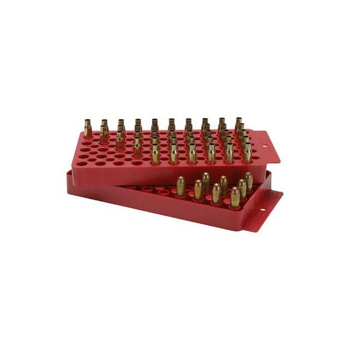 Designed to hold 50 rounds for loading. The Universal Reloading Tray has been redesigned to be able to handle more rounds than ever. While it still holds almost all rifle cartridges .17 through .458 Winchester and handgun calibers for 9MM, .38, 40 and .45 pistol calibers. It also now fits newer rounds, such as the WSM, WSSM, Rem, Ultra Mags and the 500 S&W Mag.