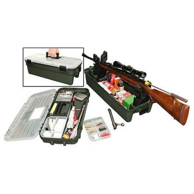 Mtm is always looking for a way to improve your day at the range, and we believe we have with the new shooting range box. We feel it is the ultimate range box maintenance center that you're going to find on the market. Sporting a gun cleaning kit on top with a rifle maintenance cleaning stand base. It utilizes a two-piece design for compact transport and convenience. This setup is a must have for breaking in a new barrel, testing loads and sighting in rifles. Every one knows, how you run the first box of ammo though your new barrel, will effect it's group sizes the rest of it's life. That is why competition brenchrest shooters clean their barrels on average every 6 or 7 shots.