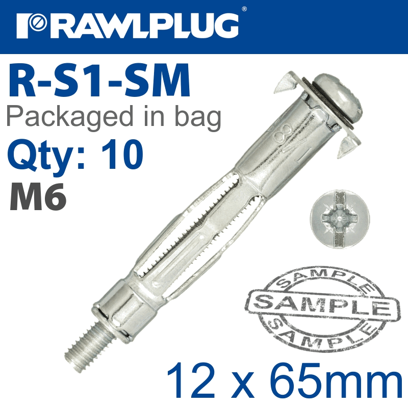 RAWLPLUG Interset Cavity Fixing M6X65Mm X10-Bag